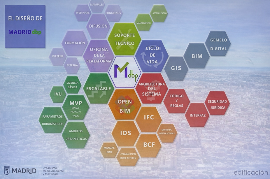 Finalmente, cabe mencionar la automatización regulatoria que planteó el Ayuntamiento de Madrid. La agenda incluía una sesión de presentación y explicación sobre MADRIDdbp para automatizar licencias urbanísticas mediante BIM, GIS e IA, lo que supone una traducción de reglas en lenguaje humano a lenguaje máquina para verificar cumplimiento antes de licencia.