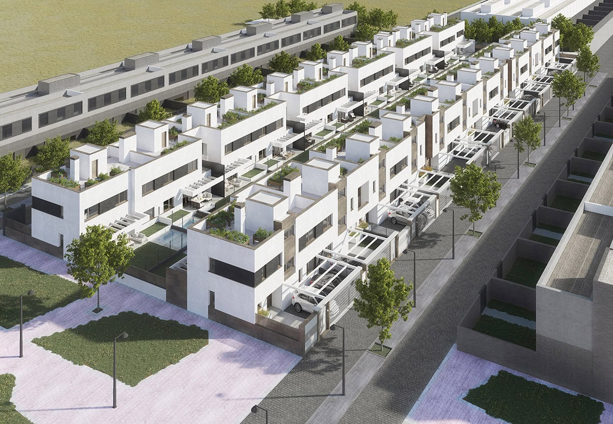 Descubre “Villas de los Molinos”, un residencial único y exclusivo de 24 viviendas unifamiliares adosadas de 4 y 5 dormitorios. Con parcela privada de entre 182 y 210m2 más 100m2 de zona verde con huerto urbano en la azotea de la vivienda.